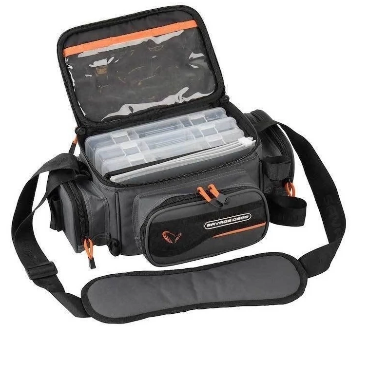 A Savage Gear mindenre kiterjedő táskakollekcióját horgászok tervezték, horgászoknak, sok-sok praktikus megoldással és variációs lehetőséggel. Jár hozzá 3 db áttetsző doboz, amiben kedvenc műcsalijainkat tárolhatjuk. A tető belső felén áttetsző tasak áll rendelkezésre, ahová papírokat vagy telefont is tehetünk