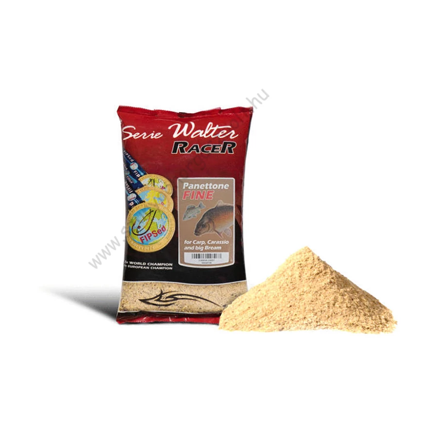 Panettone Fine: A vadonatúj Serie Walter Racer etetőanyag család zászlóshajója, amely már a 2016-os tesztidőszak alatt is futószalagon hozta az érmeket többek között a Maty-érről. Az egyszerre gyümölcsös (citromos-narancsos) valamint vaníliás aromájú tradicionális olasz kuglófhoz hasonló aromájú keverék célhala a ponty valamint a nagyobb testű kárászok, dévérek. A kaja apró szemcsemérete ellenére tartalmas, ezért a téli vagy kora tavaszi időszakban maximum 1-2kg elég egész napra. Walter Tamás kedvenc pontyos etetőanyaga, melyet előszeretettel használ nyári körülmények között is. Színe bekeverve világosbarna, drapp. A normál Panettonéhoz képes finomabb szemcsemérettel rendelkezik, ami hideg vízben, vagy rosszul táplálkozó halak esetében jöhet jól. Íze a nagymennyiségű mézeskalács tartalma miatt édes. Javasolt adalékok: szúnyoglárva, fojtott csonti, csemegekukorica pép.
