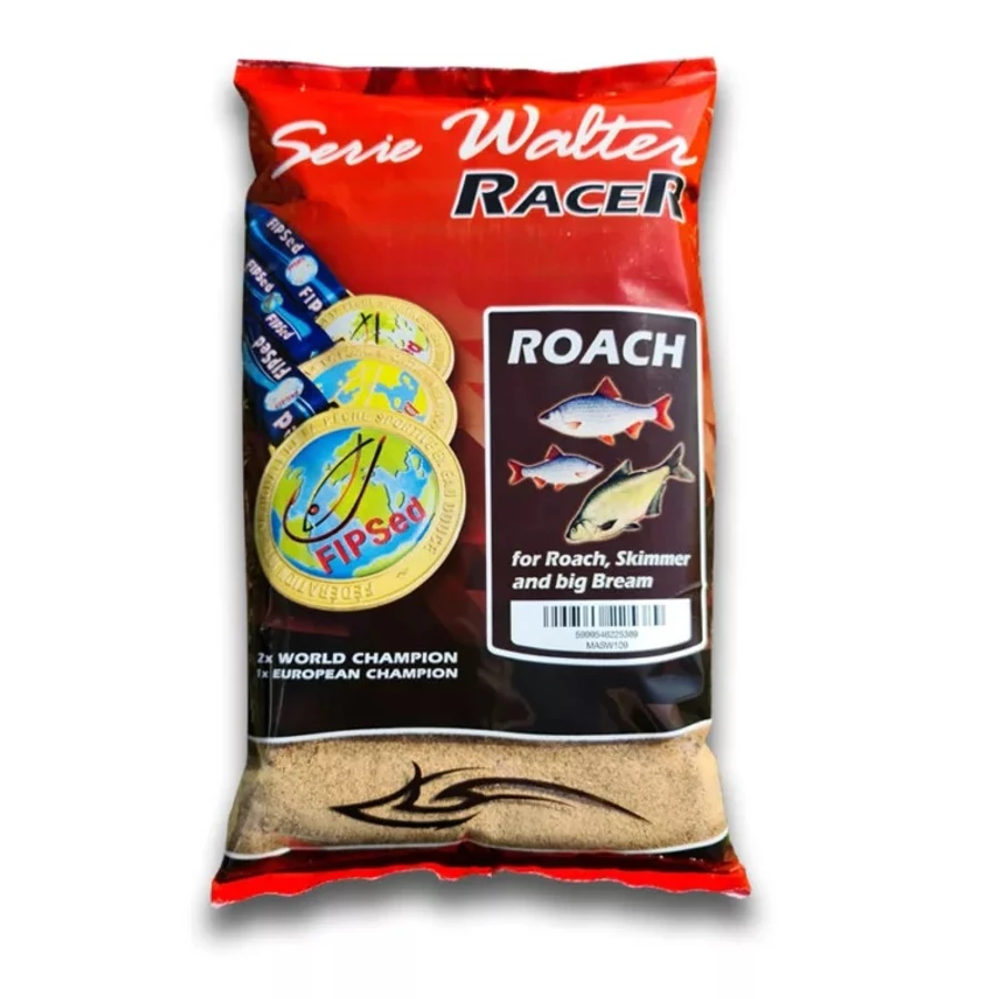 Nem csak pontyos kaják találhatók az új Serie Walter Racer család tagjai között, hanem például vegyes keszegfélék valamint nagy dévérek megfogására egyaránt alkalmas etetőanyag is.Apró szemcsemérete és magas süteménytartalma miatt egyaránt keverhető könnyen oldódó szárazabb vagy éppen tapadós nedves formára. Utóbbi esetben javasoljuk legalább 1:1 arányban keverni löszös földdel. A Racer Bream specialitása, hogy nem tartalmaz semmilyen hozzáadott színezéket vagy illatanyagot, fahéjas, mézes, korianderes illatát és ízét kizárólag valódi fűszereknek köszönheti. Színe középbarna, a hozzáadott föld függvényében egyaránt alkalmas álló- vagy folyóvízi horgászatra. Javasolt adalékok: föld, szúnyoglárva, esetleg piros süllyedő morzsa (karikakeszeges vizeken)