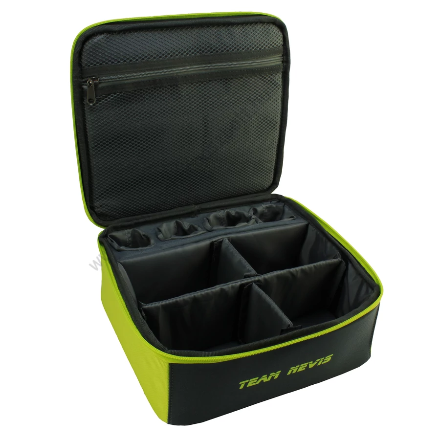 Négy orsó és ugyanennyi pótdob tárolására alkalmas ez a táska.Főként kisebb méretű orsók tárolására szolgál,bár a nagyobb orsók is beleférnek,de ehhez ki kell venni a tépőzáras rekeszelválasztót.A horgászfelszerelések egyik legértékesebb és egyben legsérülékenyebb részét az orsók képzik.Éppen ezért érdemes óvni őket,erre pedig ez a kemény fedő,vízhatlan,strapabíró táska tökéletesen megfelel.Fogantyúja neoprén borítást kapott. -Méret:29x27x12cm -Szín:grafit szürke,neon zöld -4db orsónak+pót dobnak tartó
