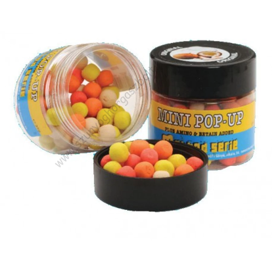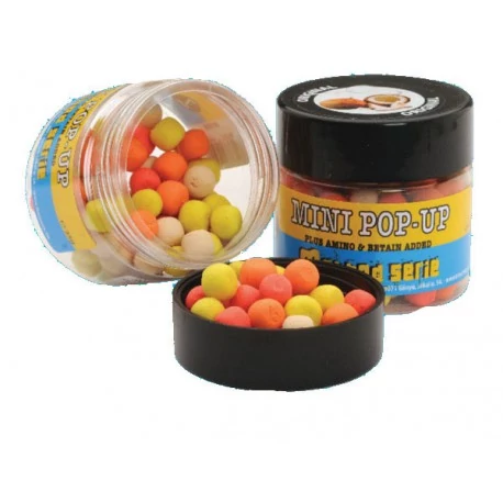 A pop up csalik lényege, hogy a mederfenéktől elemelkedve keltik fel a halak érdeklődését. Egy megfelelő méretű horoggal elérhetjük, hogy az etetőanyagunk felett 1-2 centiméterrel helyezkedjenek el, így a halak könnyen beszippanthatják. A Mini Pop Up magas tápértékű alapanyagokból készül, melyek az élénk fluo színeivel és különleges ízeivel kiemelkedik a többi lebegő csali közül. Méretben: 7, 11mm Kiszerelés: 35gr