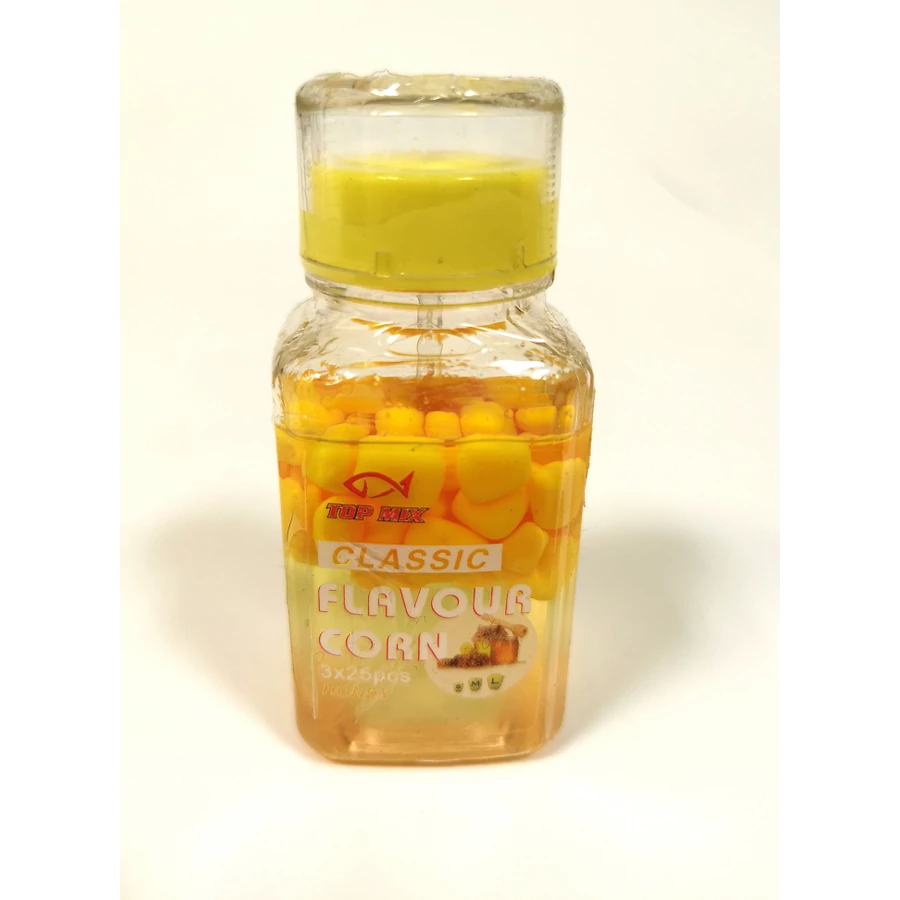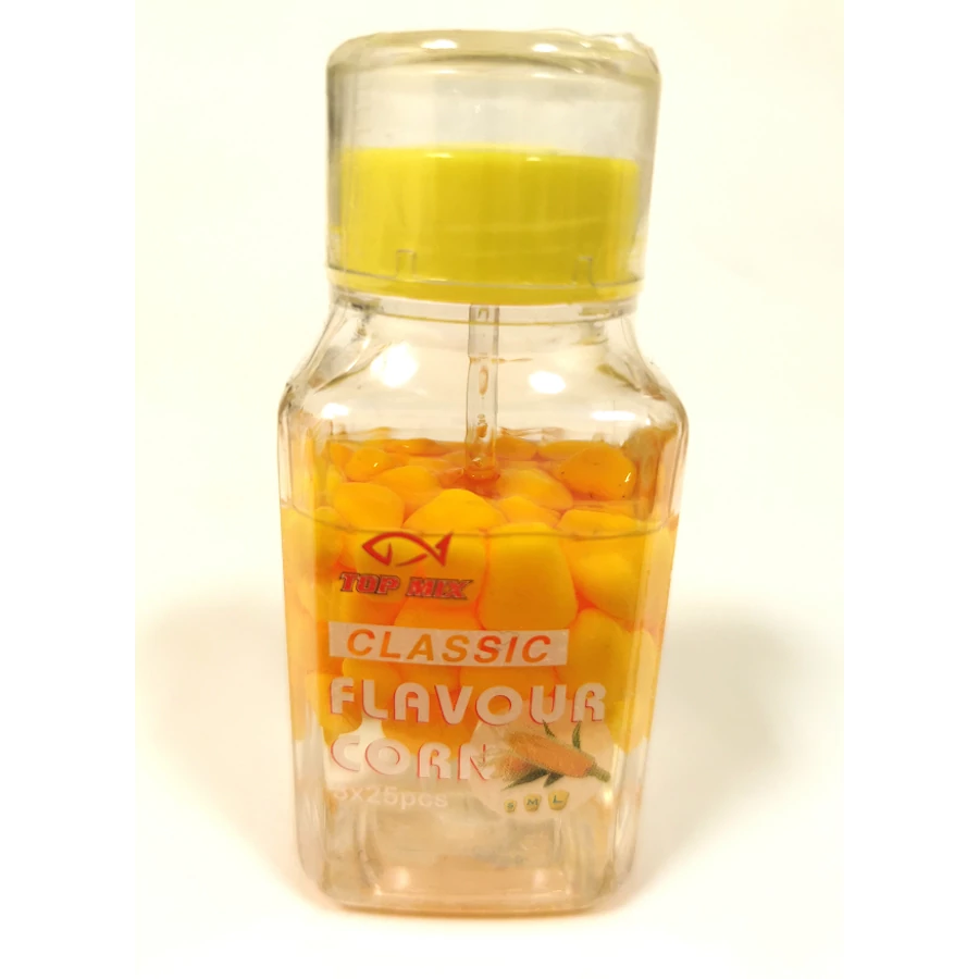 A TOP MIX MagicCorn kukorica imitáció (gumikukorica) olyan tulajdonságokkal rendelkezik, amelyek jó csali felkínálás esetén ellenállhatatlanná teszik azt a halak számára. Megtévesztő hasonlóság az igazi konzerv kukoricához, kitűnő lebegő képesség és intenzív íz jellemzi ezt a terméket. Az íze és aromája egyedül álló, ezen felül egy praktikus tégelyben van, amiből egy kis kanál segítségével szedhető ki a 3 x 25db kukoricaszem ( S, M és L méretben), így nem koszoljuk ezáltal sem az üvegben lévő szemeket, sem az aromát.