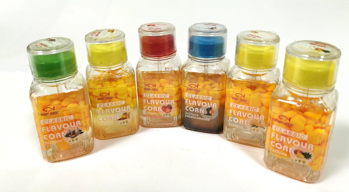 A tégelyben 3 méretű kukorica szem található. A közepes (M) méret jellemzően a dobozos kukorica mérete, a nagyobb méret (L) az apróbb halak szelektálására szolgálhat, a kicsi méret (S) pedig igazi versenyméret, amelyet akkor használunk, ha halat akarunk fogni, mérettől függetlenül.