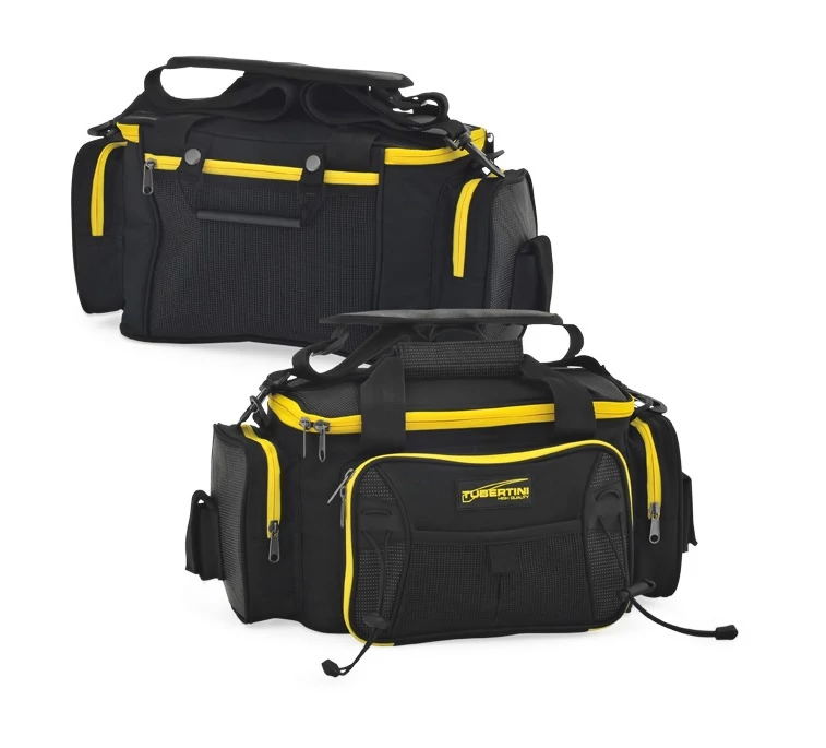 Praktikus szerelékes táska a Tubertinitől. Minőségi, strapabíró anyagból készült, formáját üresen is megtartja. A belső nagy tároló rész párnázott, így biztonságban tudhatjuk felszerelésünket. Tárolhatunk benne orsókat is, vagy egyéb kiegészítőket. A fedél alatt található egy hálós tároló rész a kisebb méretű holmiknak, iratainkat vagy telefonunkat is elhelyezhetjük benne. A táska rendelkezik még 2db kisebb és egy nagyobb oldalzsebbel, így könyebbé téve a különböző eszközök rendszerezését. Pátnázott vállpánttal és praktikus hordozó füllel rendelkezik a kényelmes szállítás érdekében.