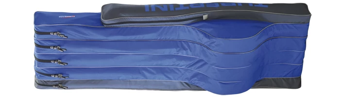 A Tubertini RL 4 igényes kivitelű Feeder/ Matchtáska, mely speciális anyagának köszönhetően rendkívül strapabáró és vízálló, ennek köszönhetően felszerelésünk nagyobb esőben sem ázik el benne. A Tubertini cég különösen nagy hangsúlyt fektet cipzárinak minőségére, így nem kell félnünk a szállítás közbeni cipzár szétvásástól és az ezzel járó botok sérülésétől. A cipzárakon található vászon fogantyúnak köszönhetően könnyen használható még a téli hidegben elgémberedett újjakkal is. A táska négy külön fakkal, valamint egy külső zsebbel van ellátva. Benne feeder illetve matchbotjaink a hozzá való orsókkal a sérülés veszélye nélkül, teljes biztonságban szállíthatóak. Érdekessége hogy a szokottól eltérően nem az orsó oldalán, hanem a bot felől helyezkedik el tároláskor a cipzár, így garantáltan nem sérti meg damilunkat. A plusz hosszúkás zsebben pedig kényelmesen elfér horgászernyőnk. Elegáns, világoskék színnel, állítható válpánttal kerül forgalomba. A táska hossza: 180 cm.