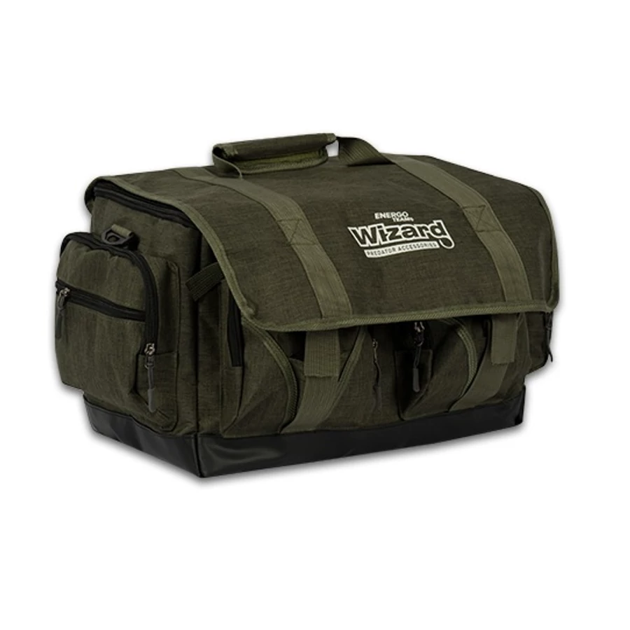 A Predator Max táskában kényelmesen elférnek a legnagyobb műcsalis dobozok is, akár a nagyobb jerkcsalikat preferáló pergetőknek is alternatívát adva. A belső nagyobb rész mellett, oldalt 2 darab dupla cipzáras zseb található rajta, mely a kapcsok, ollók, kisebb fogók, engedélyek és plusz horgok tárolását biztosíthatják. Elülső részén a lehajtható fedélrész alatt, szintén 2 cipzáras zseb kapott helyt, extra fogótartókkal. Mérete: 43x24x24 cm Anyaga dizájnos zöld színű és kellően erős kivitelű, extra vízhatlan alsó résszel kiegészülve, így garantáltan hosszútávon is megfelelő kiegészítője lesz a pergetőknek.